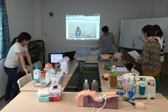 平成24年4月の「社会福祉士及び介護福祉士法」の改正により、介護職員等によるたんの吸引等の実施が制度化されました。吸引のできるヘルパーの必要性のニーズの高まりに併せて、在宅ケアで吸引のできるヘルパーを養成するため、喀痰吸引等の研修機関として登録し、吸引等のできるヘルパーを養成しています。吸引はノウハウさえ理解すれば、怖くありません。
